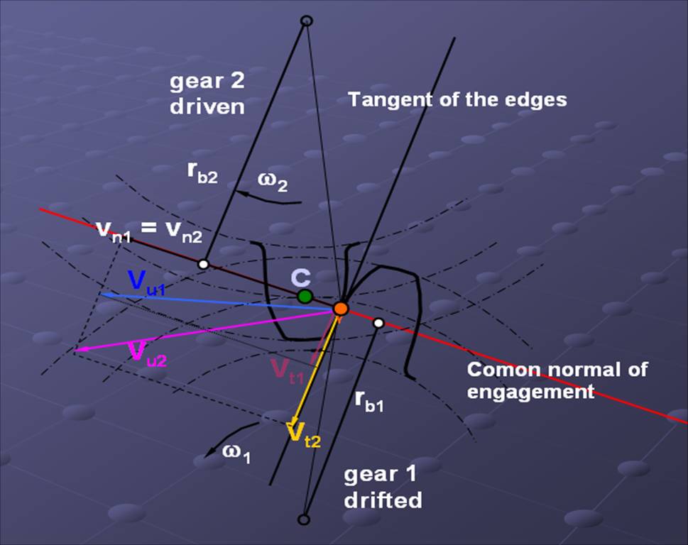 Condition: the comon normal of engagement (red) have to go in every contact point through the contact point C of the pitch circles
